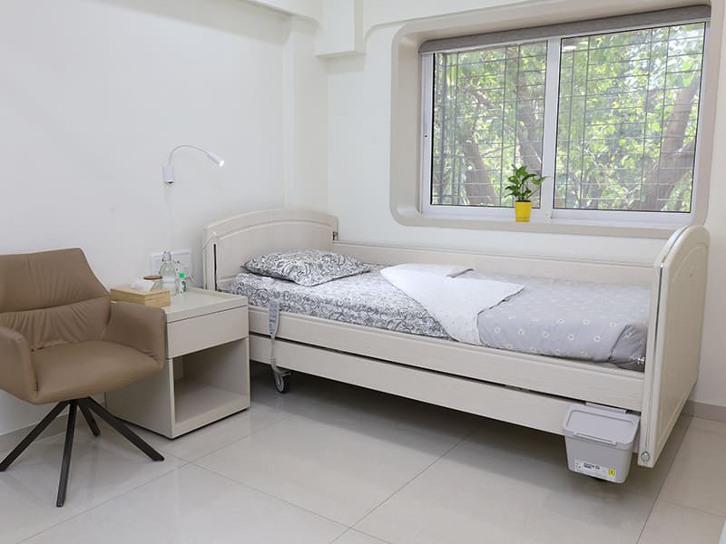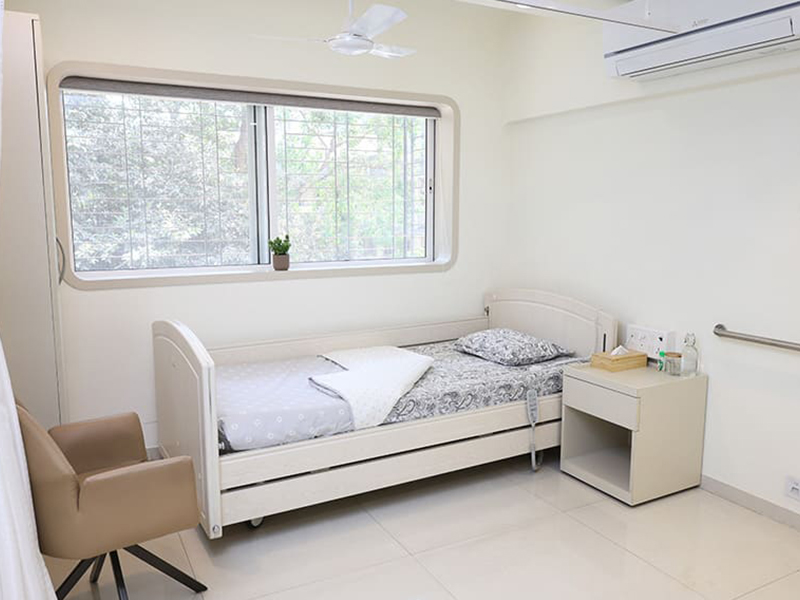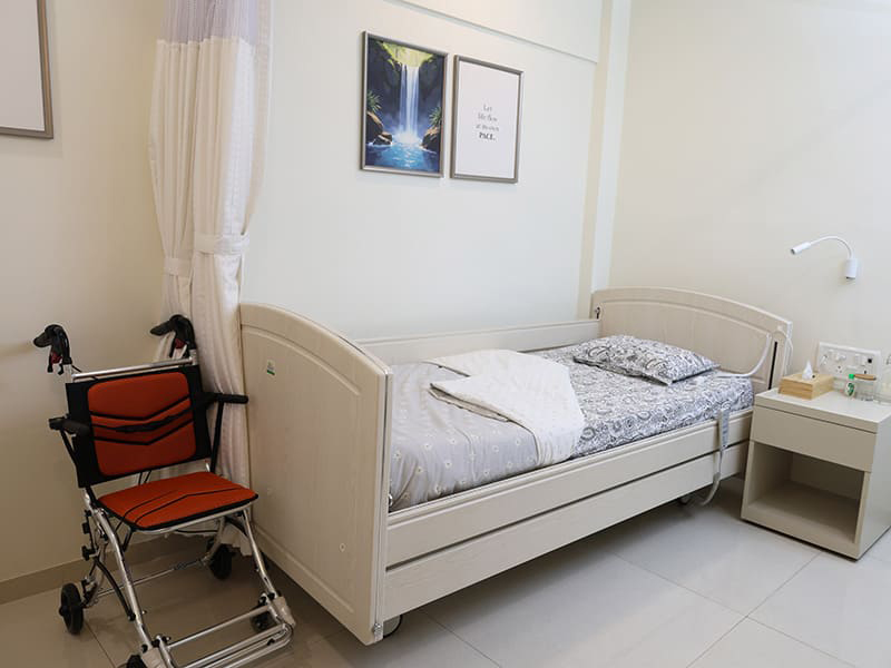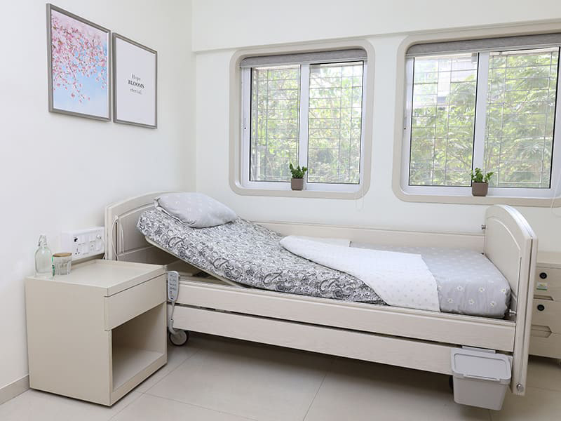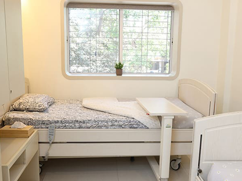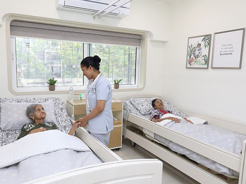 All rooms are designed with ergonomic beds, elder-friendly layouts, curtains for privacy, safety systems, sensor lights and essential storage that ensures both comfort and peace of mind.
